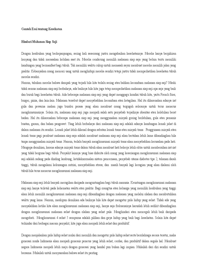 Contoh Esai Tentang Kesehatan Pdf